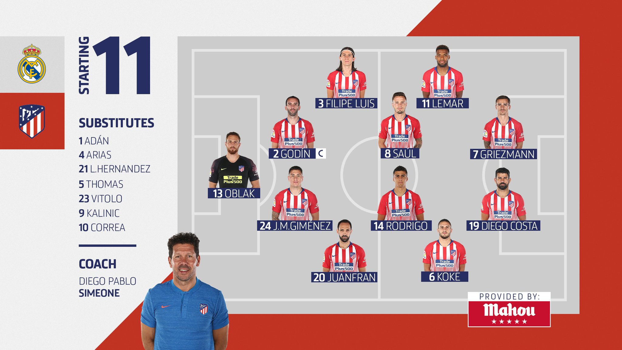 Meanwhile, jose gimenez will be recalled to bolster the defence.